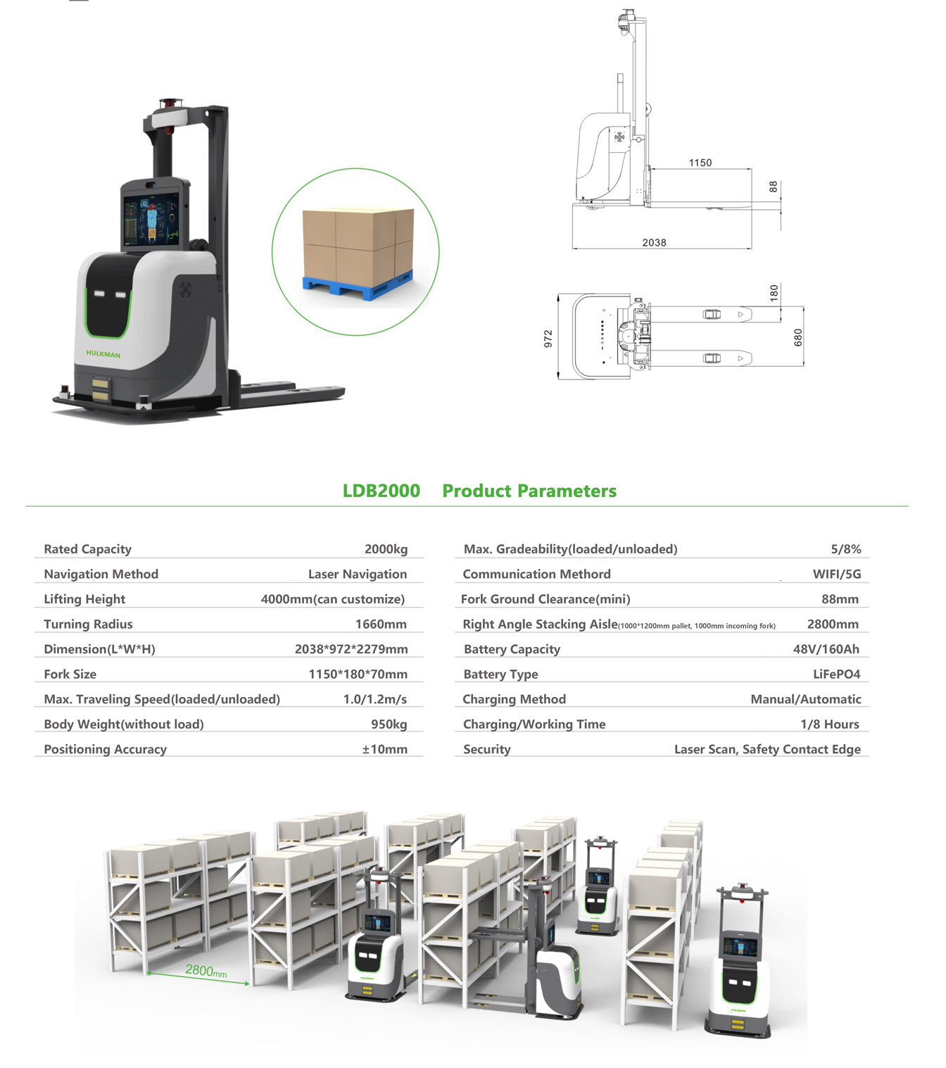 2000KG AGV Electric Stacker
