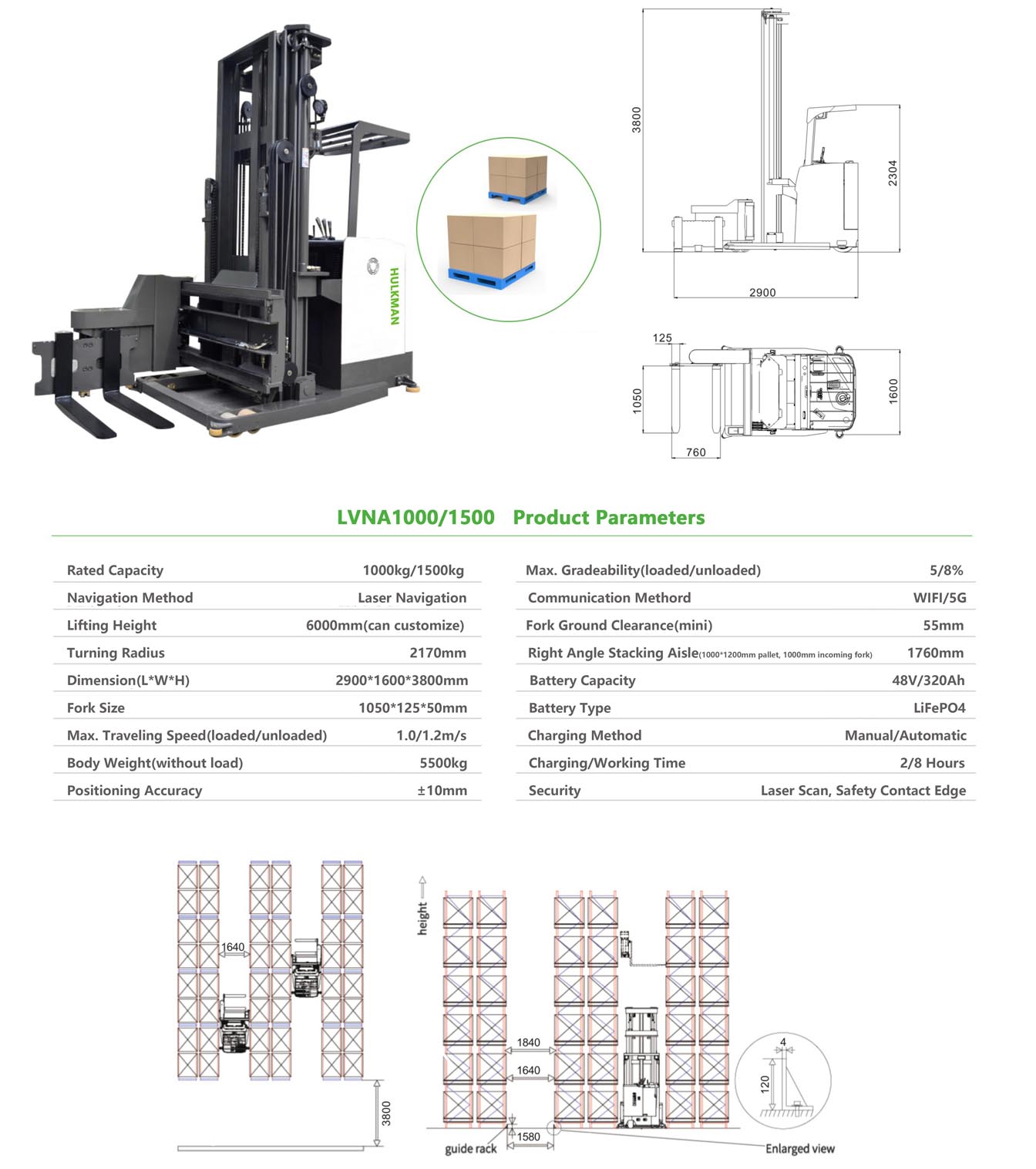 1000KG/1500KG AGV Tri-Laterial Electric Forklift